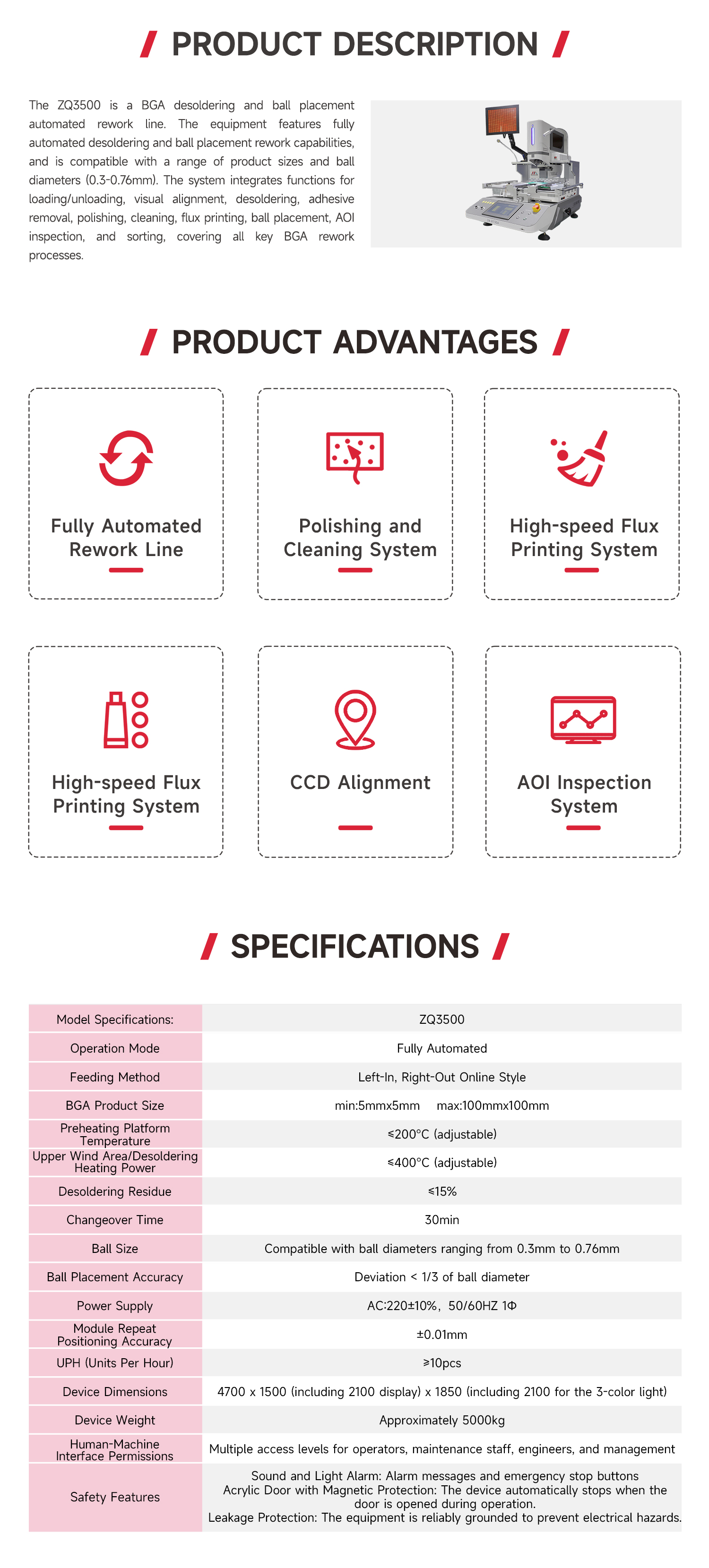 ZQ3500BGA tin removal plant ball automatic repair line